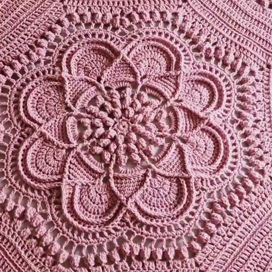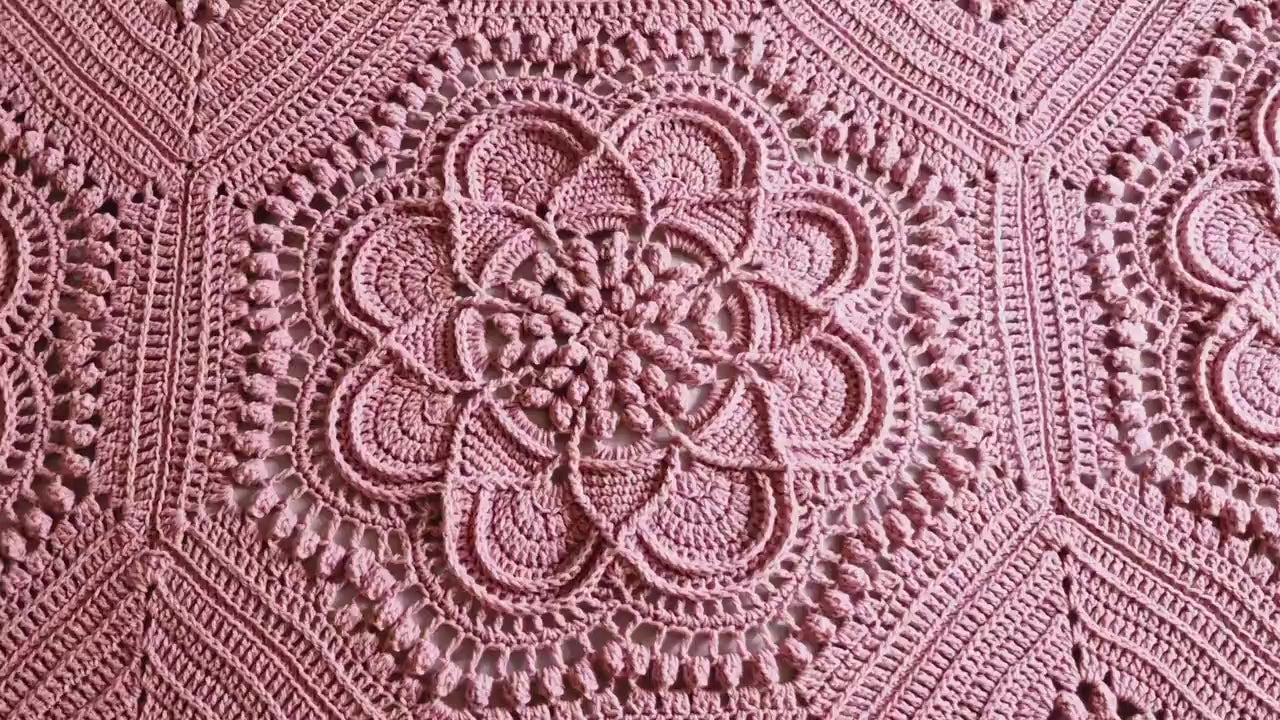 A richly textured, elegant blanket made with floral motifs. Includes step-by-step photos, full instructions, and stitch counts.