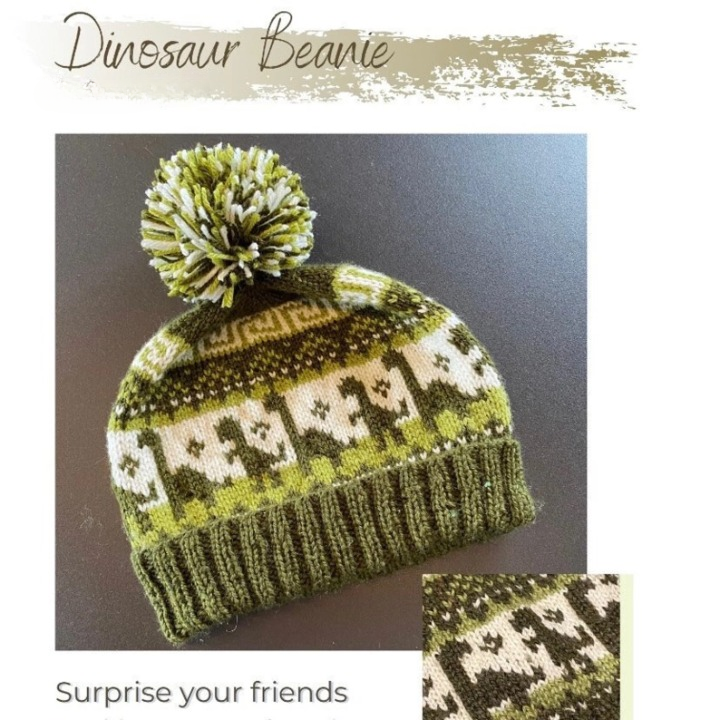 • 🧶 Style: Made in the round with cute dinosaur motifs